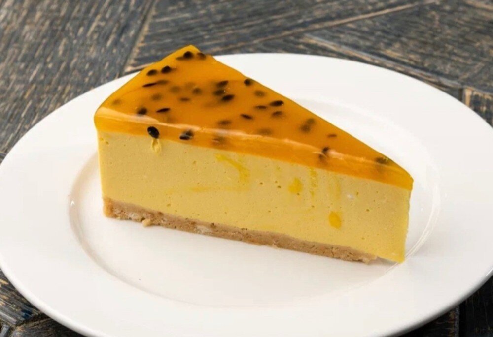Пюре манго, пюре из маракуйи, твороженный сыр, песочное печенье