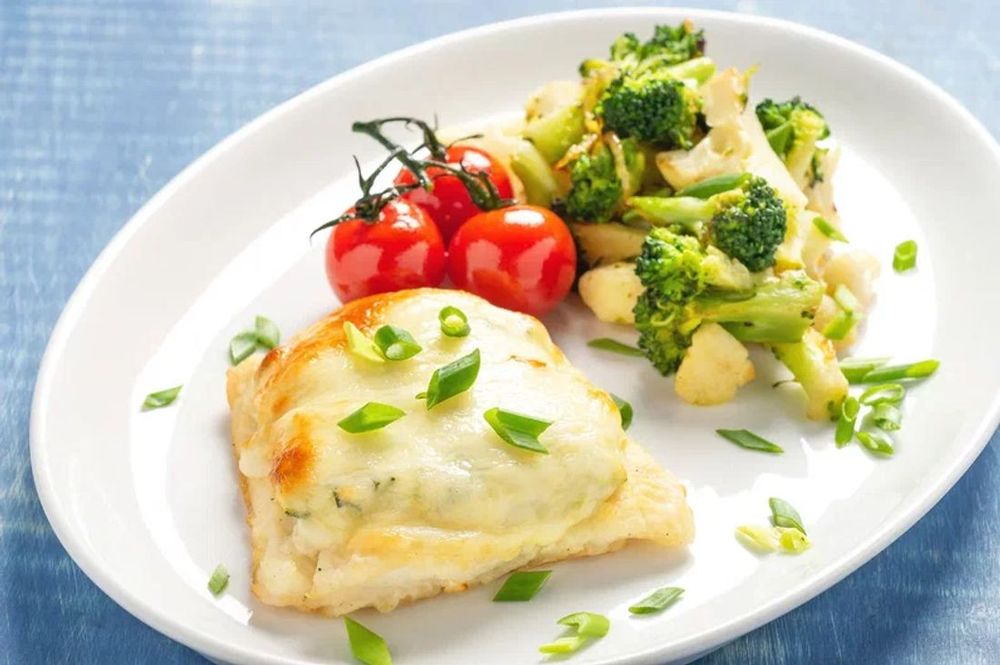 Треска запеченная с кабачком и сыром