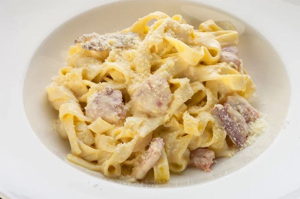 Бекон, пармезан, сливочный соус, паста