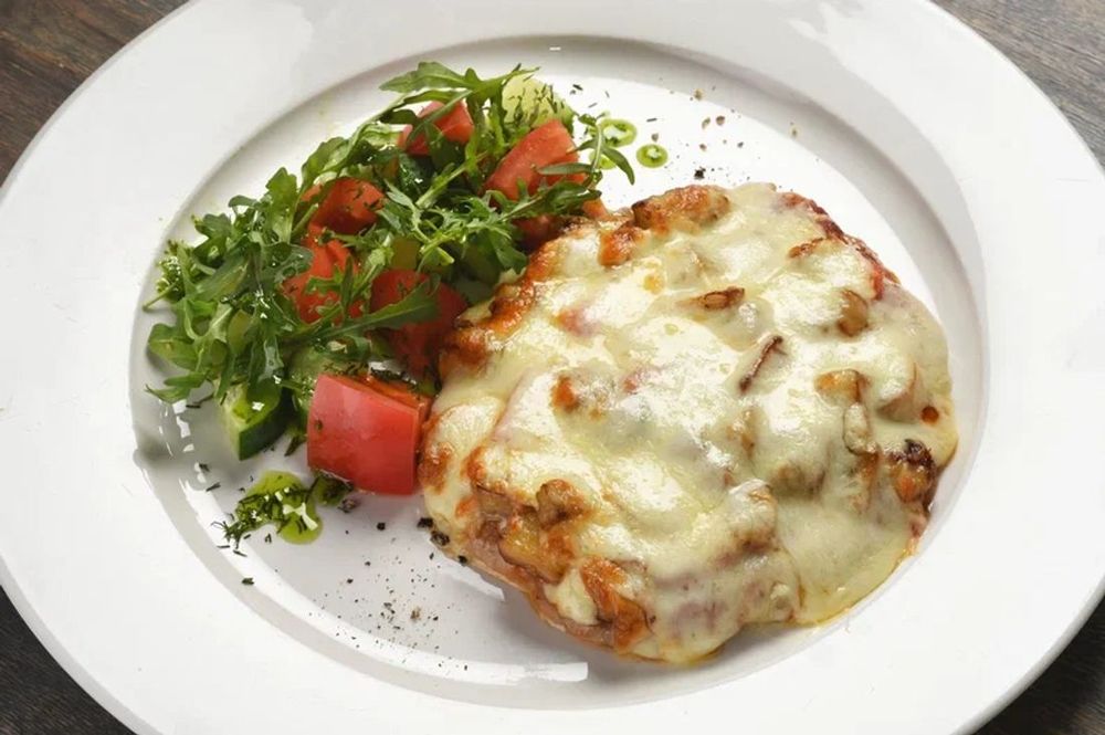 Шницель из свинины со свежими овощаи