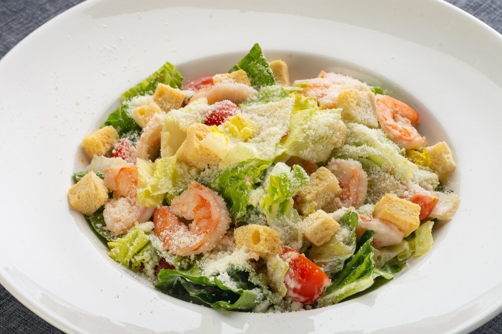 Куриное филе, гренки, черри, салатный микс, пармезан