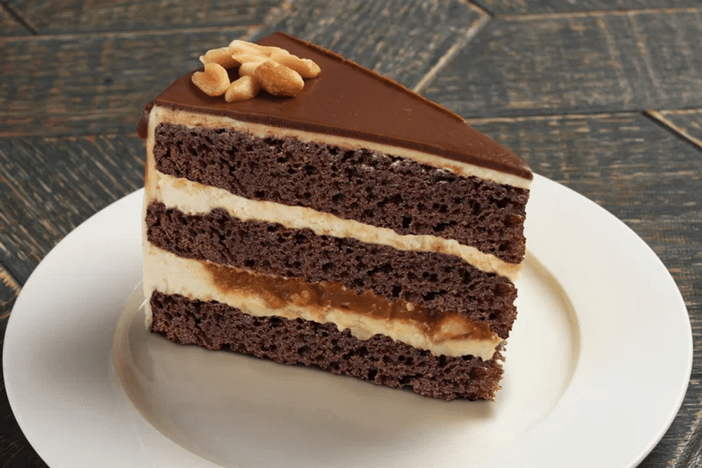 Бисквит, сливочный крем, арахис, молочный шоколад