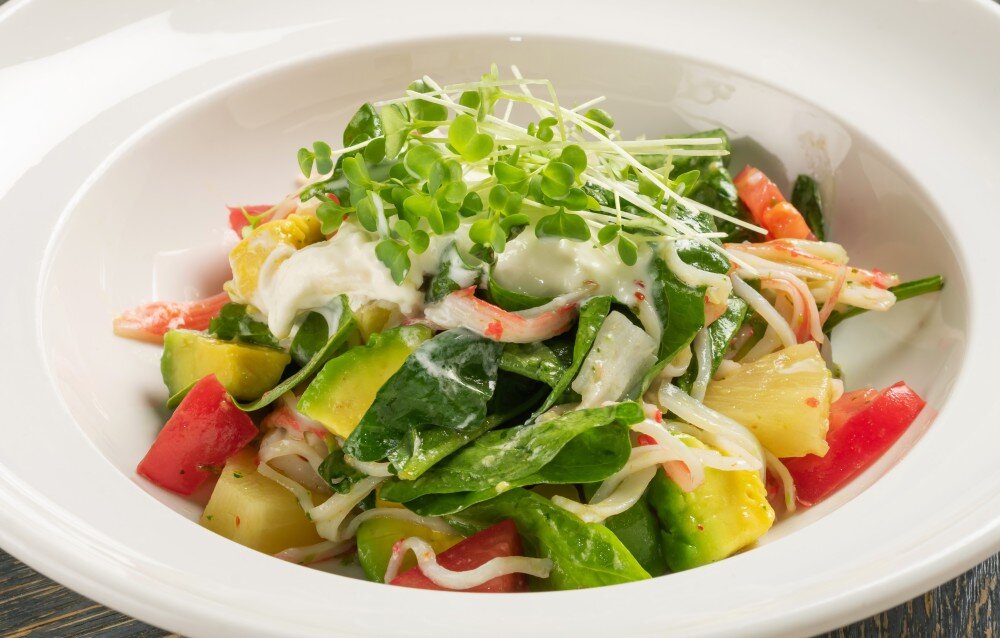 страчателла, авокадо, ананас, снежный краб, соус чили, сок лайма