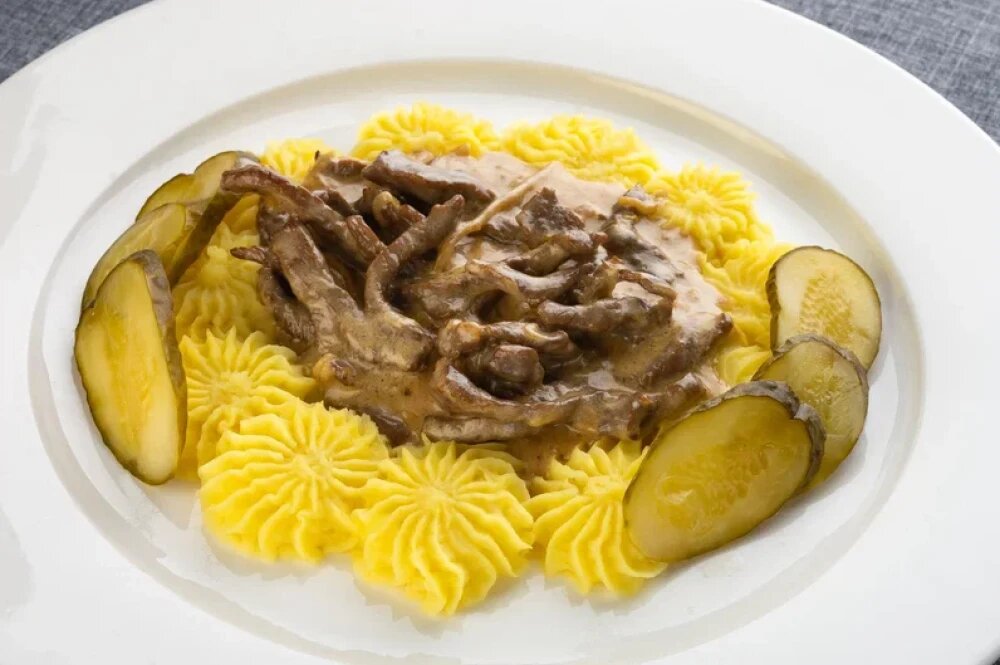 Бефстроганов с картофельным пюре