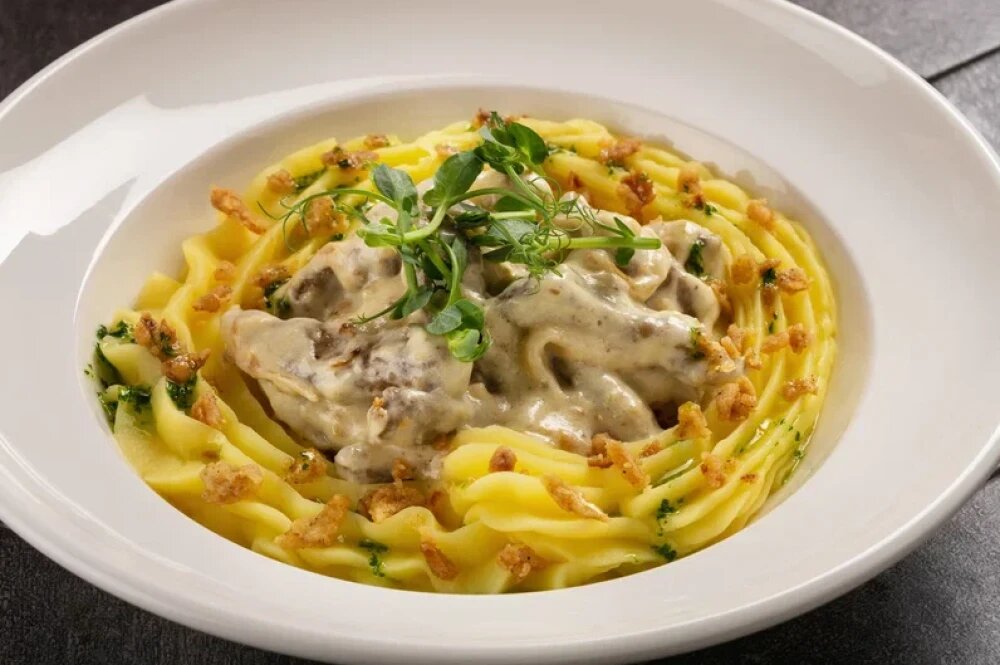 Говядина в сливочно-грибном соусе