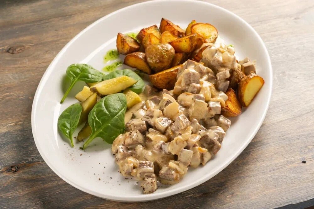 Бефстроганов с картофельным пюре